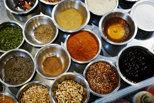 beautiful fragrant indian spices in the kitchen in a restaurant