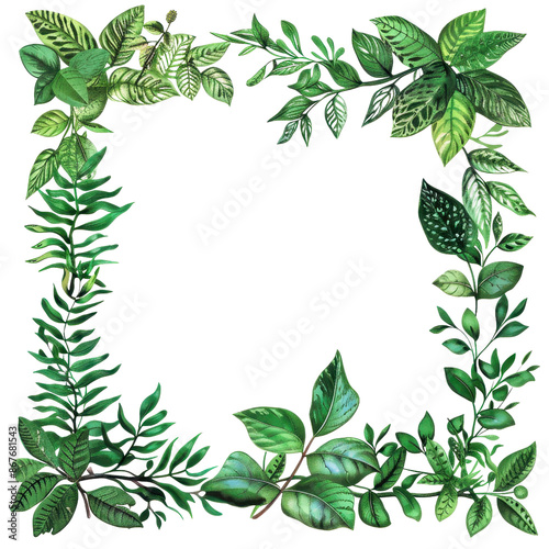 Beautiful frame of green leaves providing a natural border perfect for invitations, websites, and designs.