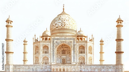 Beautiful front view of the Taj Mahal with intricate details and symmetry under bright daylight, showcasing its architectural grandeur.