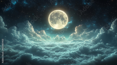 beautiful, full, moon, night, sky, glowing, bright, serene, darkness, celestial, atmosphere