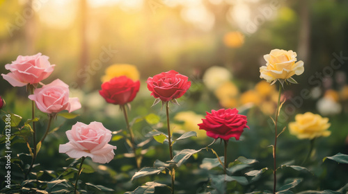 beautiful garden filled with roses showcasing vibrant colors and delicate petals, creating serene and joyful atmosphere