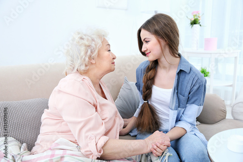 adult, aged, ageing, arm, assistance, beautiful, blanket, care, caucasian, communication, couch, elderly, enjoying, family, female, gathering, generation, girl, granddaughter, grandmother, grandmother, grandparent, grandmother, hand, happiness, happy, help, home, human, love, mature, old, pensioner, people, relation, human relationships, relative, retiree, retirement, senior, support, together, togetherness, trust, oneness, volunteer, woman, young