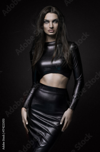 girl, evil, goth, mistress, white, background, metal, clothing, model, black, style, leather, fashion, woman, accessory, make-up, dress, gothic, halloween, vamp, fear, latex, masquerade, sorcerer, role, kinky, dominatrix