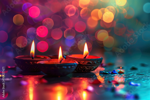 Beautiful greeting card with bright holiday composition for happy and celebrate Diwali