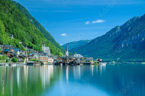 lake, landscape, water, mountain, nature, sky, mountain, panorama, summer, view, blue, travel, austria, village, green, bay, coast, scenic, tour tourism, beautiful, town, austrian alps, cloud, alps, europa, wallpaper, unesco, heritage, attraction