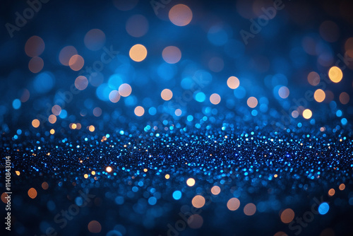 Beautiful Holiday Banner with copy space, bokeh blue background poster, glitter, sparkle, mock up