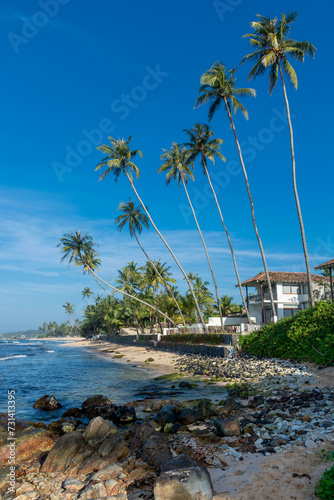 Beautiful Indian Ocean coastline on the island of Sri Lanka, Unawatuna.