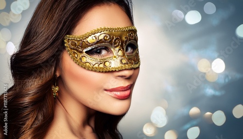 ベネツィアのカーニバルの仮面をつけた美しいイタリア人女性(Beautiful Italian woman in a Venetian Carnival mask)