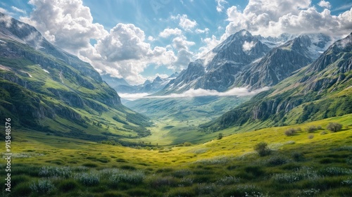 mountain, landscape, vale, sky, cloud, beautiful, green, grass, blue, honed, beauty, scenery, nature, summer, view, season, light, cloud, panorama, sunlight, environment, tour tourism, hill, peak, sunshine, high, hiking, forest, meadow, sunrise, travel, colours, scene, natural, ecology, scenic, spring, bright, cloudscape, outdoors, wally, sunny, morning, idylli, mountain