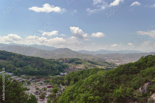 mountain, landscape, south korea, sunny, hill, house, building, park, forest, travel, sky, korean, national, nature, rock, landmark, stone, beautiful, korea, exotic, wild, outdoors, tour tourism, cloud, destination, cliff, scenic, scenery, up high, tree, lifestyle, asian, freedom, explore, asia, architecture, skyline, spring, view, village