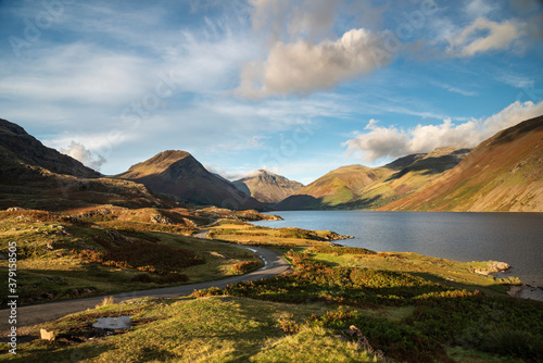 Beautiful late Summer landscape image of Wasdale Valley in Lake District, looking towards Scafell Pike, Great Gable and Kirk Fell mountain range