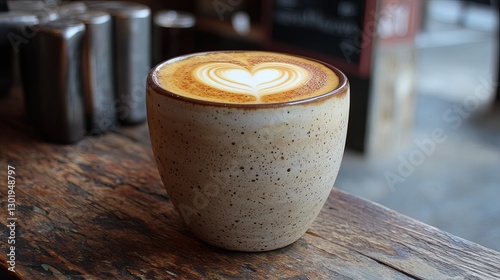 Beautiful latte art displayed in a rustic coffee shop during the afternoon hours