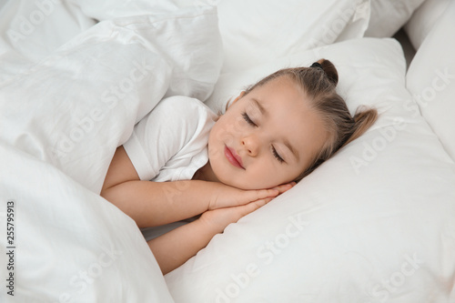Beautiful little girl sleeping in bed. Bedtime schedule