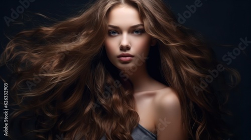 Beautiful model woman with long hairstyle care and beauty hair products