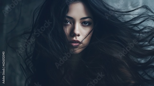Beautiful model woman with long hairstyle. Care and beauty hair products. Generative AI