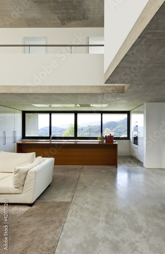 beautiful modern house in cement, interior, living room