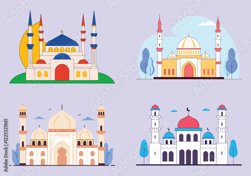 Beautiful Modern Mosque Vector Art. Stunning Digital Mosque Illustrations.