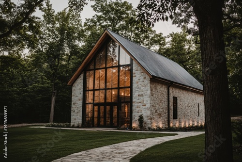 modern, architecture, stone, building, glasses, window, evening, atmosphere, serene, environment, lush, tree, gathering, space, tranquil, design, landscape, dusk, lighting, event, venue, natural, setting, architectural, beauty, countryside, peaceful, scene, rustic, charme, contemporary, style, inviting, entrance, warm, ambience, pathway, creative, stylish, roomy, interior, structure, planning, relaxing, surrounding, innovation, community, greenery
