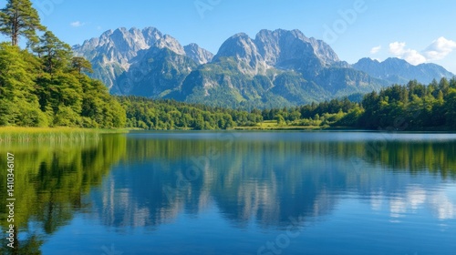 Beautiful mountain landscape reflecting in the clear waters of the lake