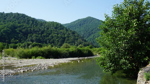 Beautiful mountain river among the hills
