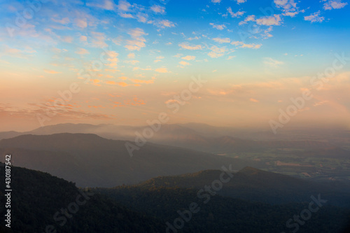 Beautiful mountains and sky in the morning,Mountains under mist in the morning Amazing nature scenery form Kerala God's own Country Tourism and travel concept image, Fresh and relax type nature image