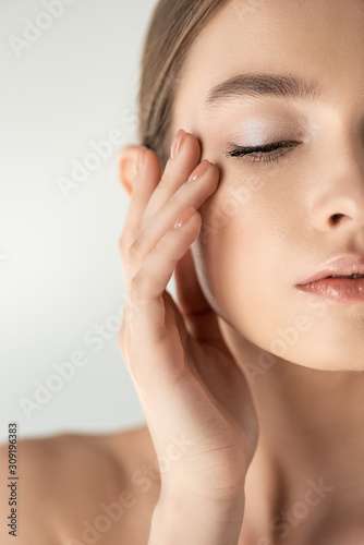 beautiful, elegance, girl, young, adult, beauty, caucasian, brunette, european, pretty, elegant, tender, woman, attractive, tenderness, naked, naked, isolated on white, copy space, one person, studio shot