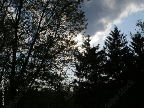 tree, sky, forest, nature, tree, blue, cloud, sun, landscape, wood, cloud, autumn, green, winter, spring, silhouette, light, dark, sunlight, pine, wood, white, summer, season