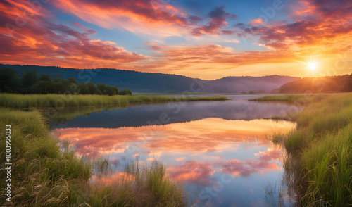 beautiful, nature, sunrise, summer, landscape, blue skies, natural background, scenic, outdoors, morning, sun, dawn, sunlight, horizon, bright, cloud, serene, peaceful, countryside, warm, weather, rural, environment, natural beauty, sky, scenic view, seasonal, clear sky, calm, picturesque, travel, vacation, wilderness
