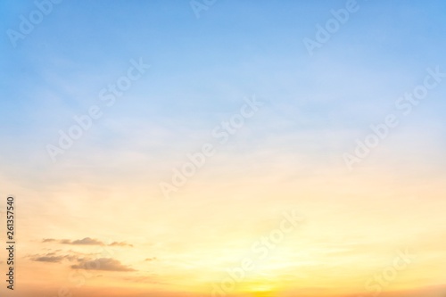 Beautiful orange sunset sunrise with clouds sky in nature.Landscape concept with copy space empty blank for text or montage design.Twilight golden time.Nature,Backdrop Concept.