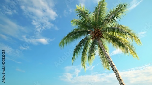 Beautiful palm tree contrasting beautifully with bright blue sky backdrop