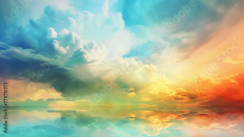 Beautiful paradise landscape picture, sky and clouds, nature, grass, meadow, river, wallpaper background