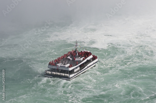 Beautiful photo of a ship in the mist of the amazing Niagara falls