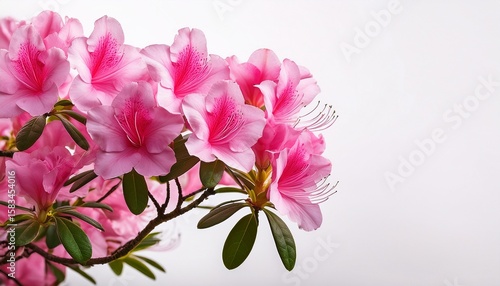 beautiful pink azalea flowers bloom on a branch against a bright white background during springtime