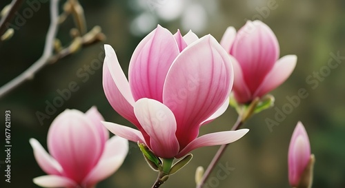 magnolia, flower, blossom, bloom, bud, flora, floral, plant, tree, tree branch, twig, nature, spring, springtime, season, garden, park, botanical, botany, horticulture, beautiful, beauty, vibrant, pink, white, magenta, purple, delicate, fresh, new, life, growth, renewal, background, blur, bokeh, closeup, macro, detail, soft, light, natural, organic, ornamental, decorative, saucer