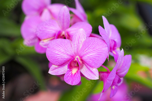 Beautiful pink orchid flower in garden at winter or spring day with blurred background