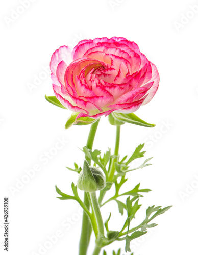 flower, background, object, beautiful, bloom, botanical, flora, green, leaf, floral, growing, blossom, season, spring, white, botany, beauty, springtime, growth, isolated, stem, gift, present, grow, ranunculus, pink, plant, space, copy, text, decoration, bright, colourful, decor, nature, colours, summer, decorative, delicate, perennial, blooming, nobody, studio