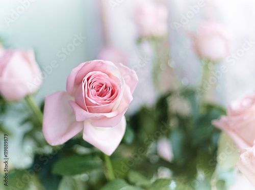 rose, rose, flower, pink, delicate, soft, blurred, blur, white, green, leaf, flower petals, background, beautiful, beauty, closeup, closeup, nature, natural, plant, flora, botany, botanical, flowering, blossom, bloom, garden, gardening, colours, gift, present, bud, bouquet, rosebud, corsage, blooming, congratulation