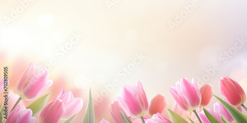Beautiful pink tulip flowers blossoming in a garden on sunny spring day. Beauty in nature.