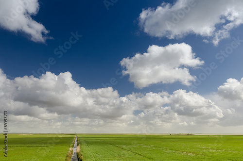 Beautiful polder landscape in Holland with typical Dutch clouds