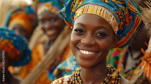 Beautiful portrait of happy smiling african woman wearing traditional clothing and head wrap