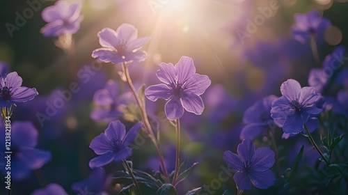 Beautiful Purple Flowers in Soft Sunlight Creating Serene Atmosphere