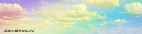 Beautiful rainbow pastel color with clouds and blue sky