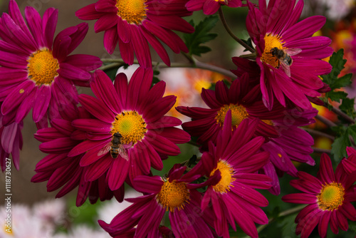Beautiful red Chrysanthemums flowers blooming in garden