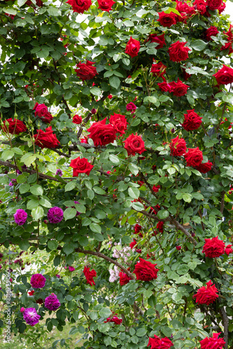 Beautiful red roses flowers blooming in a garden in Nagano.