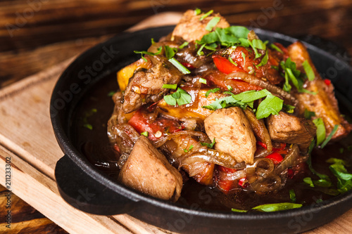 food, meat, meal, dish, dinner, chicken, plate, cookery, pork meat, vegetable, thai, fried, healthy, delicious, rice, eatery, lunch, sauce, seafood, spicey, cooking, eat, hot, pan, vegetable, chili