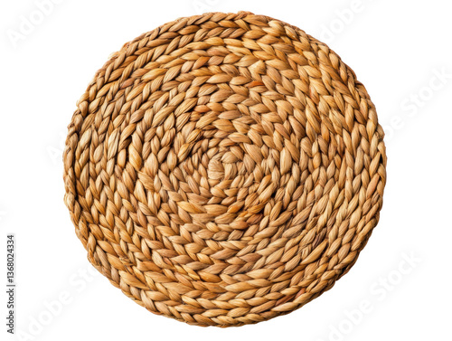 Beautiful round braided placemat for home decoration and dining on a transparent background, cut out