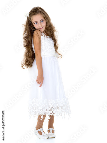 Beautiful school girl with long silky hair.