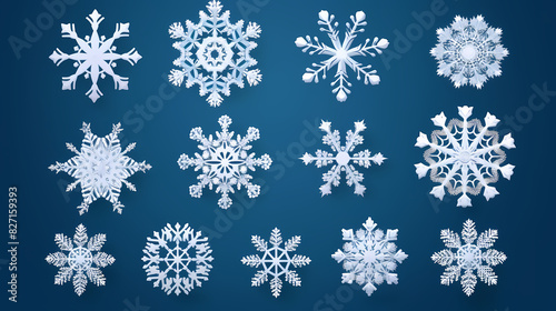 Beautiful set white snowflakes on a blue background for winter design.Vector illustration decor