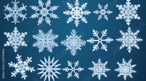 Beautiful set white snowflakes on a blue background for winter design.Vector illustration decor