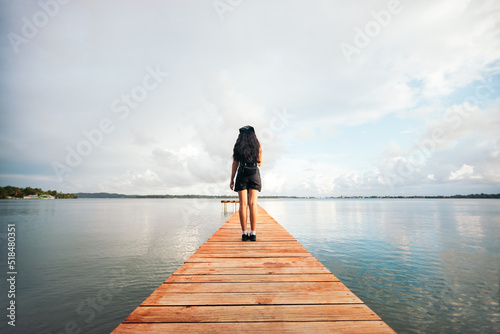 Beautiful shot of a woman alone on a wooden jetty